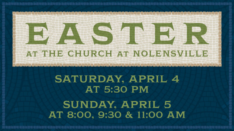 Celebrate Easter with us at Nolensville! Join us for a family-friendly service on Saturday, April 19, at 4:00 or 5:30 p.m., or Sunday, April 20, at 7:30, 8:45, 10:00, or 11:15 a.m. This one-hour service will include worship and a meaningful message, with care available for children from Birth–3 Years Old at our on-campus Saturday and Sunday Easter services. We can’t wait to worship with you!
