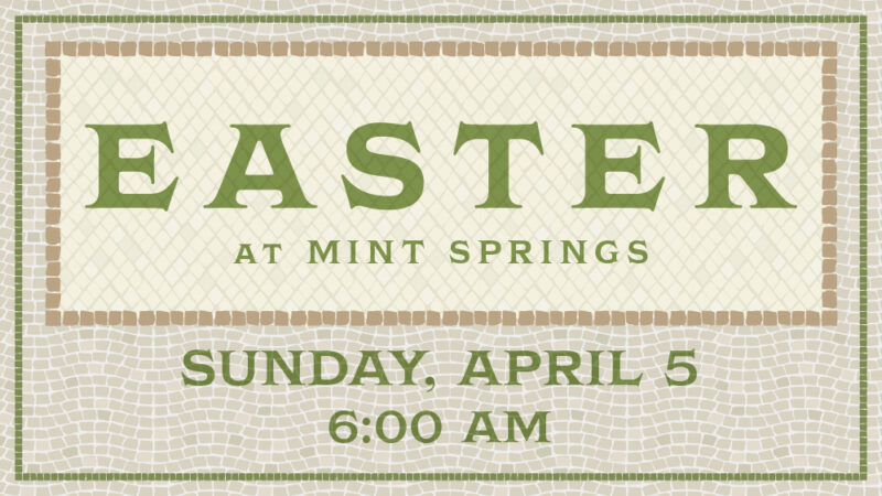 Join us for a special Sunrise Service at Mint Springs Farm on Sunday, April 20, at 6:00 a.m., as we celebrate the hope and joy of Easter together.